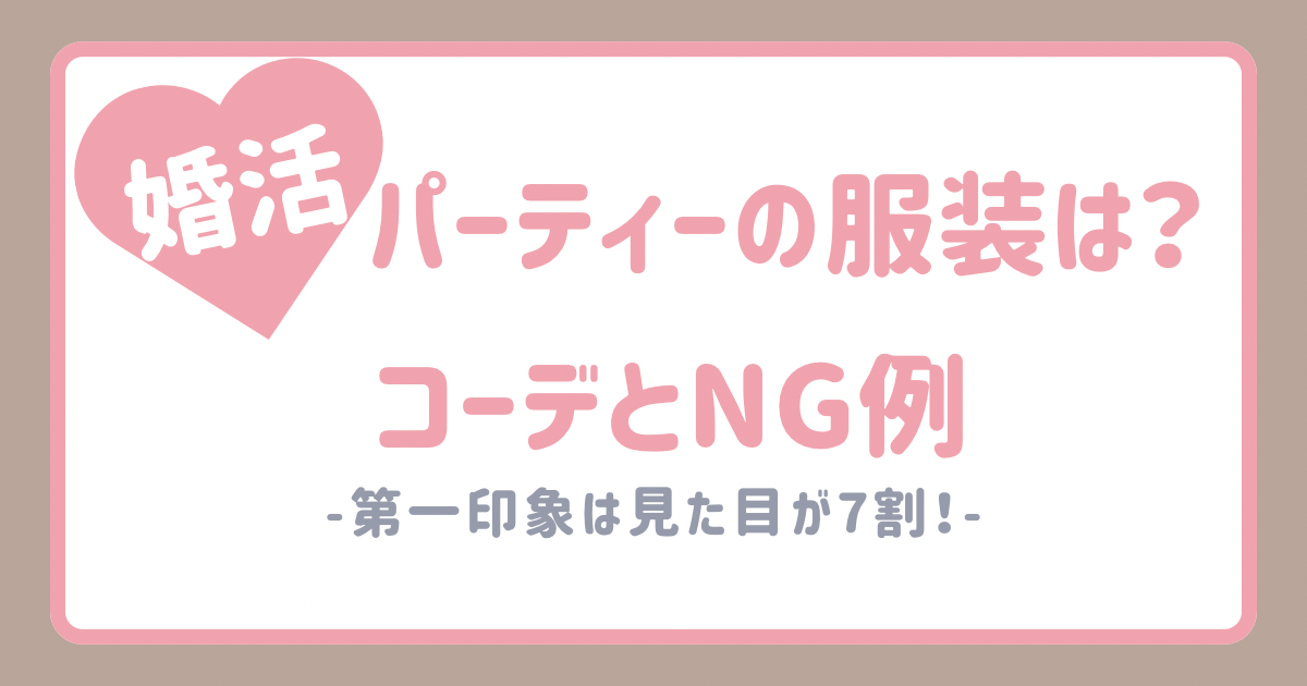 婚活「パーティー」っていうけどそんな華々しいものじゃないから、ちょっときれいめのお出かけスタイルで行けば浮くことないよ